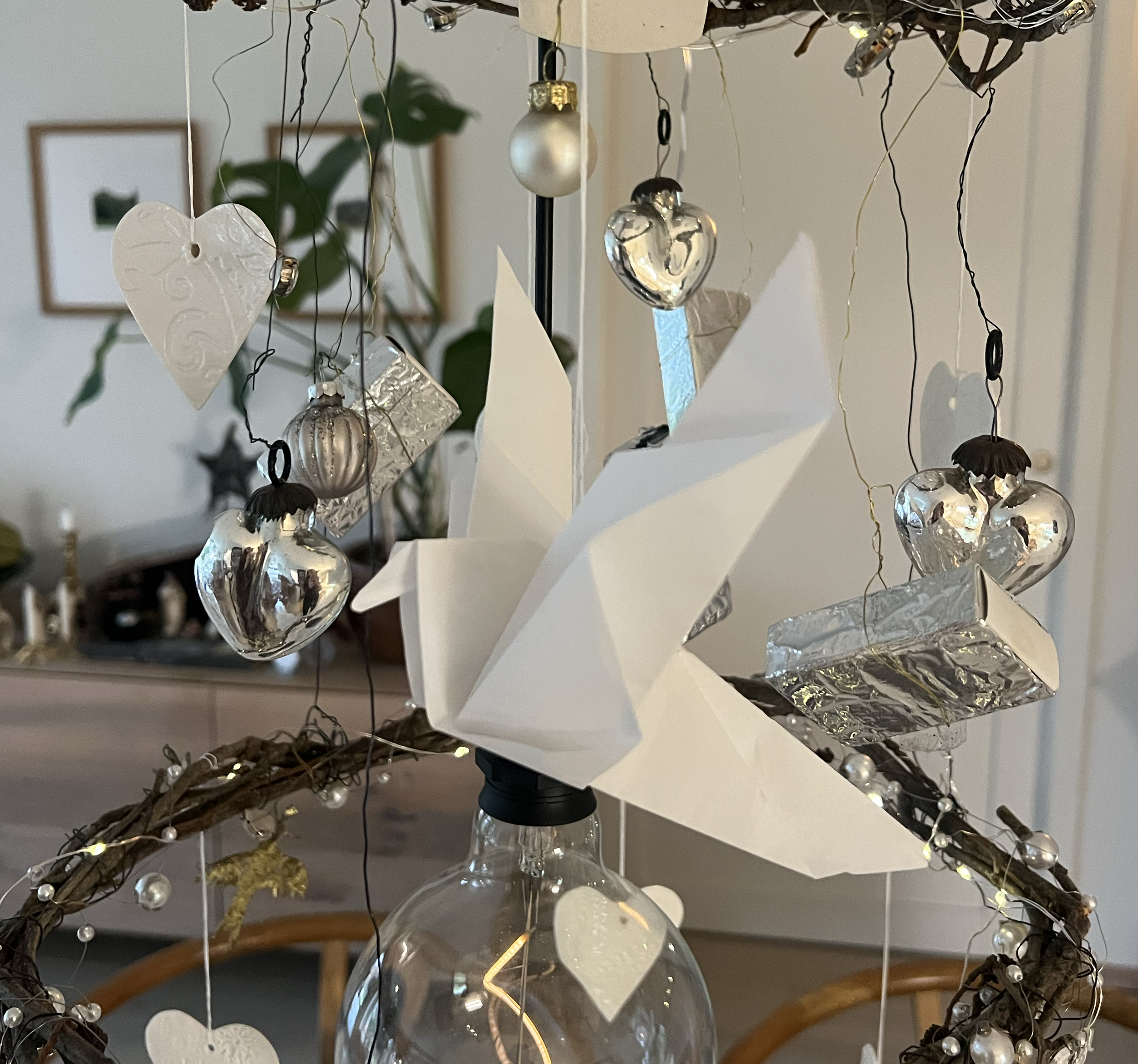 Jeg fikk et hvitt «Yoko Ono -papir» i årets julepost fra en venninne og kollega. Hun hadde plukket papiret opp i Neue National Museum i Berlin hvor Yoko Ono hadde utstillingen ”Dream together”. “Om papiret brettes ferdig blir det til en fredsfugl”, skrev min venninne.